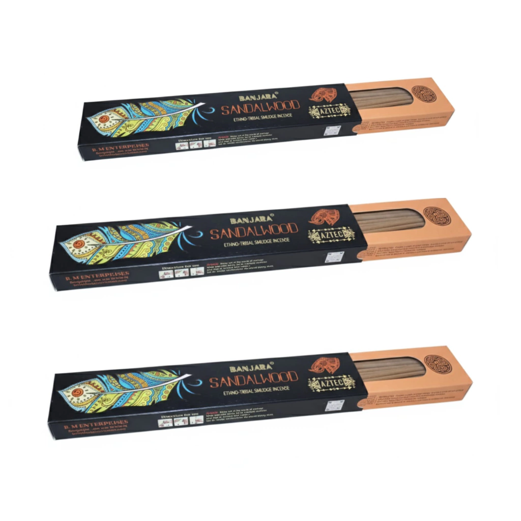 Incensos artesanais Banjara, produzidos com resinas, ervas e óleos naturais. Cada caixa possui entre 10 e 15 varetas (15g), com queima lenta e aroma marcante, ideal para limpeza energética, meditação, rituais e harmonização do ambiente.